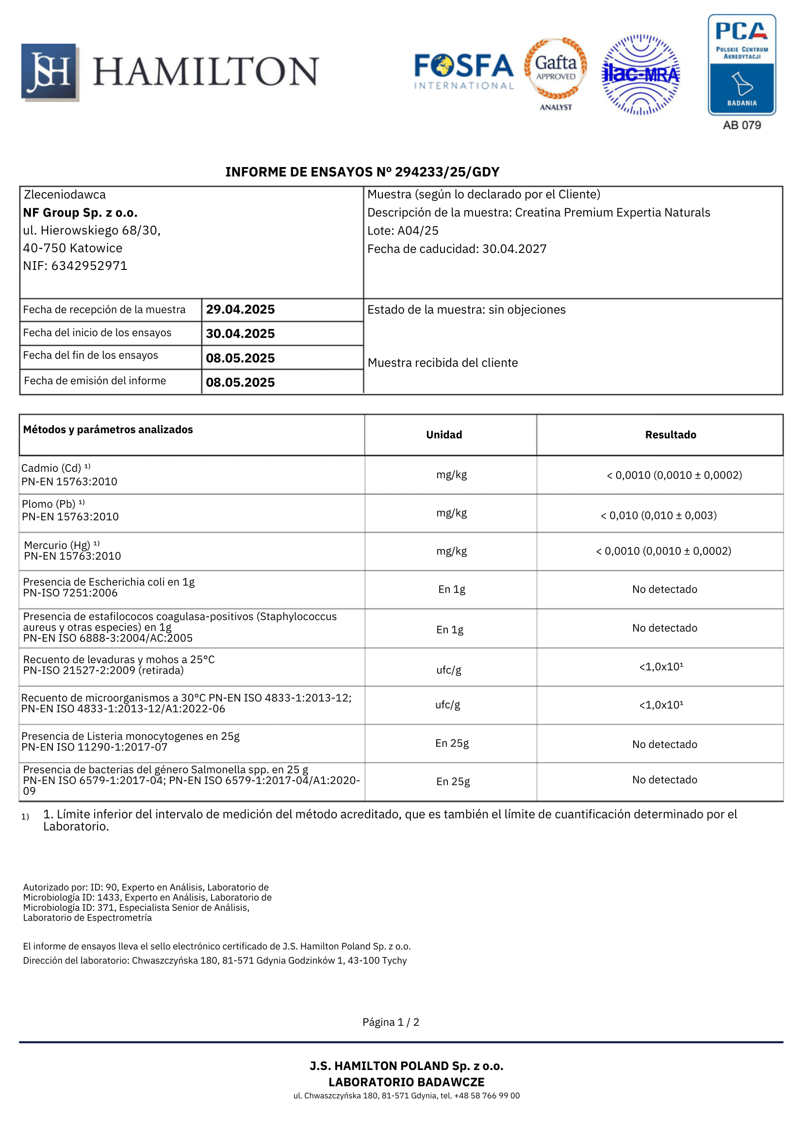 Tras la producción, cada lote se analiza en centros de investigación independientes para garantizar la ausencia de contaminantes.